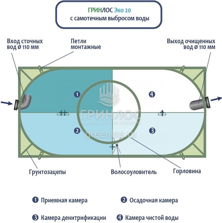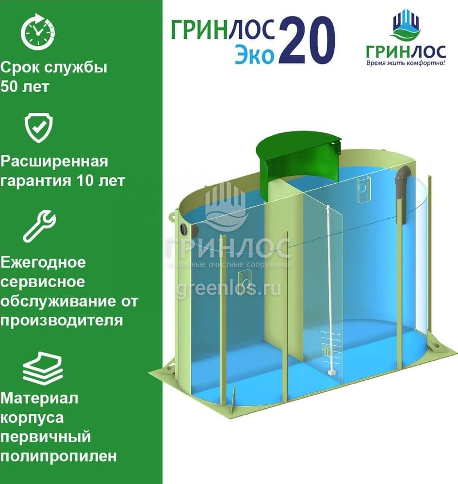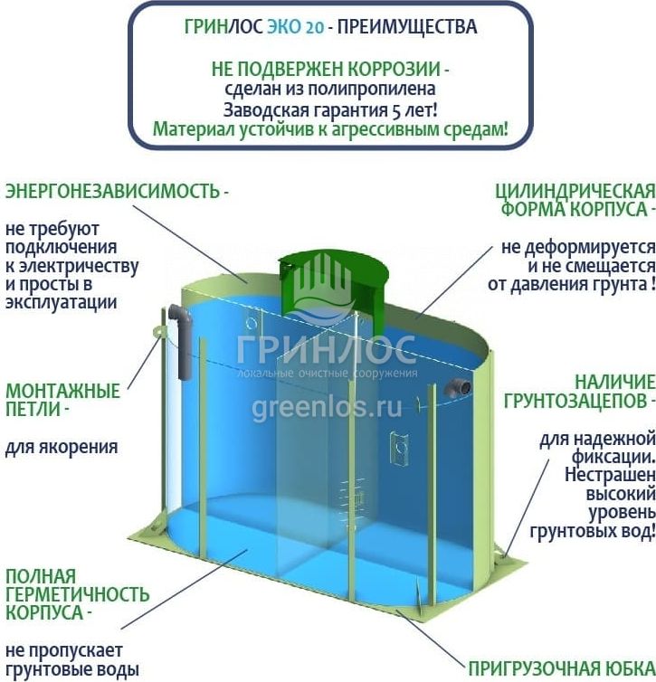 Отличительными особенностями септика ГРИНЛОС Эко 20 являются: