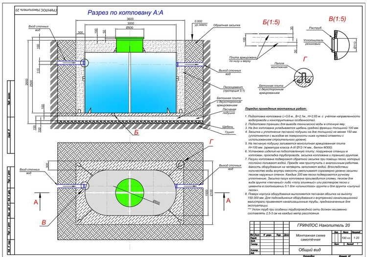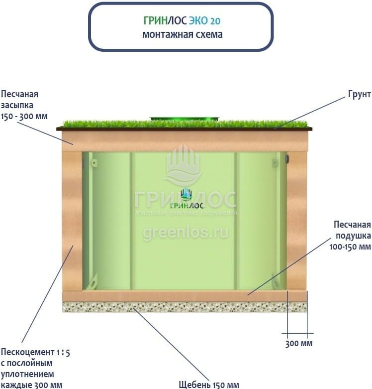 Монтаж септика ГРИНЛОС Эко 20
