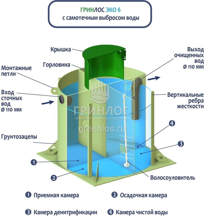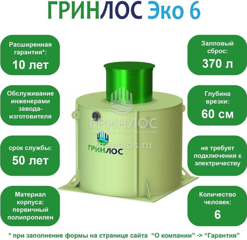 Отличительными особенностями септика ГРИНЛОС Эко 6 являются: