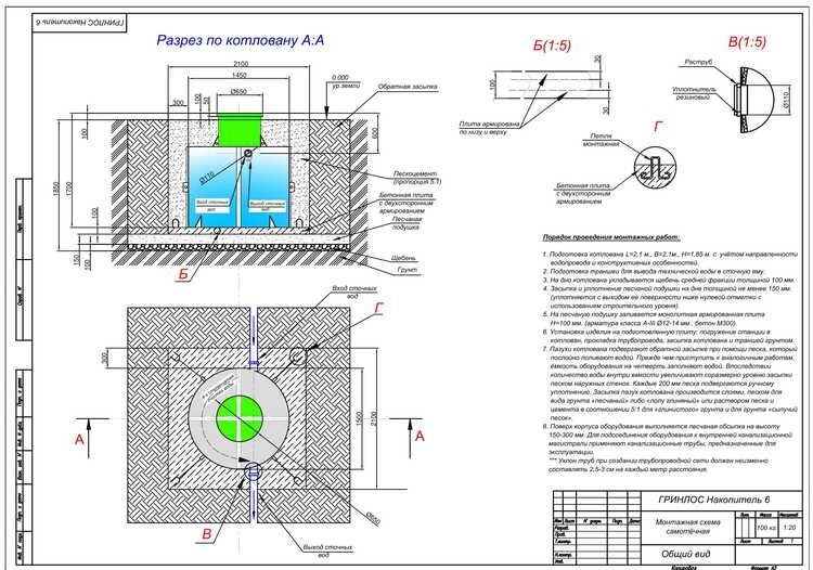 Целесообразно доверить выбор и монтаж оборудования специализированной компании. Перед непосредственным монтажом Оборудования специалисты осуществляют подготовку котлована. Его размеры определяются конструктивными особенностями выбранной модели оборудования. Ознакомиться с данными параметрами можно в приложении к ПС. По боковым стенкам корпуса должно быть сохранено свободное расстояние до грунта не менее 250 мм. Дно котлована нуждается в более тщательной подготовке. Его подвергают выравниванию с последующей засыпкой слоем песка, обладающим толщиной в пределах 10-15 см. Пазухи котлована подвергают обратной засыпке при помощи песка, который послойно поливают водой. Прежде чем приступить к аналогичным работам, емкость оборудования на четверть заполняют водой. Впоследствии количество воды внутри емкости увеличивают соразмерно уровню засыпки песком наружных стенок. Каждые 200 мм песка подвергаются ручному уплотнению.
