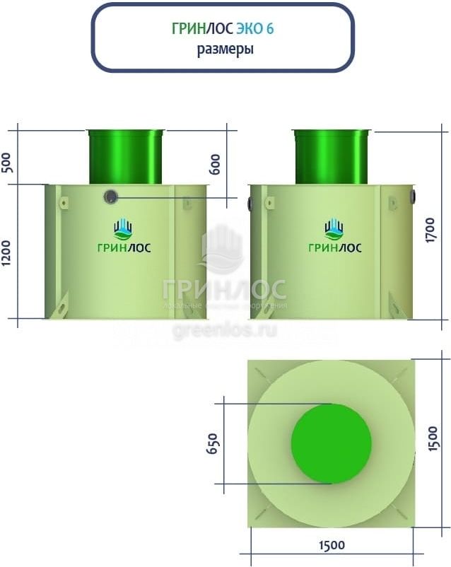 ГРИНЛОС Эко 6 — это энергонезависимый септик с залповым сбросом 360 л и производительностью 1.2 м3/сутки, что делает его подходящим для домов, в которых число жильцов не превышает 6 условных пользователей.