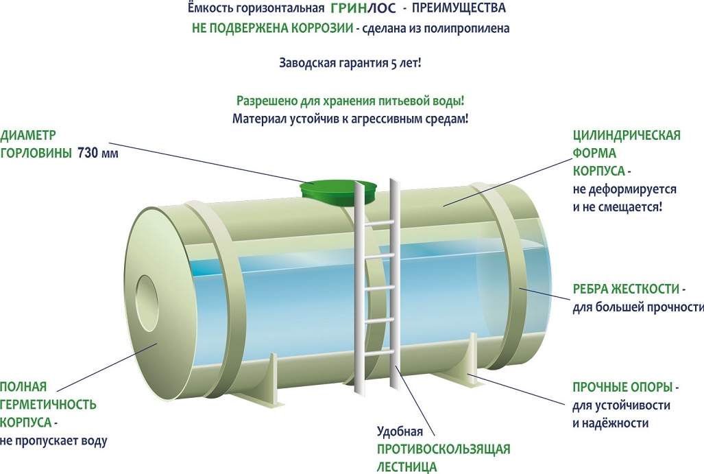 Особенности ГРИНЛОС Емкость 8000 л горизонтальная цилиндрическая