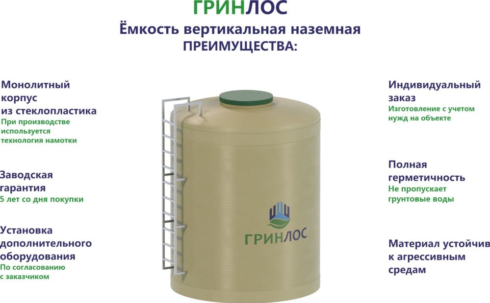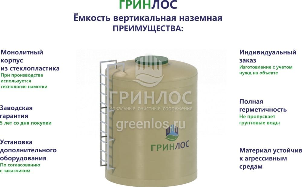 Преимущества Гринлос Емкость стеклопластиковая 15-3000 вертикальная наземная
