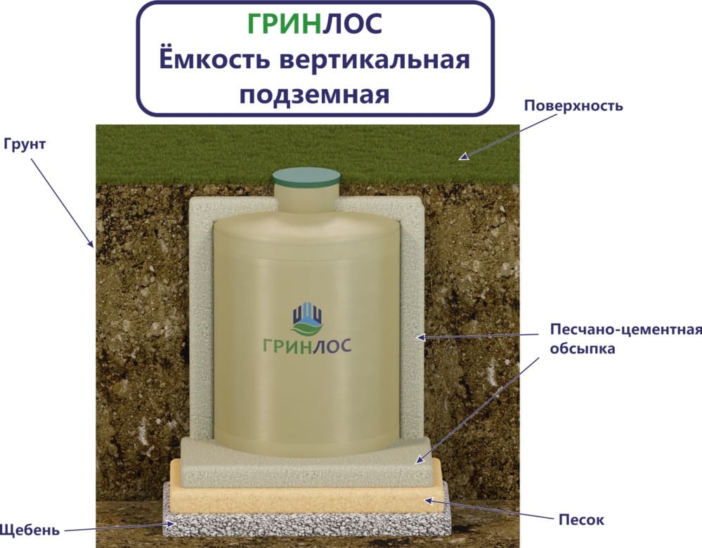 Цилиндрический вертикальный корпус ГРИНЛОС Емкости позволяет разместить оборудование на небольших территориях