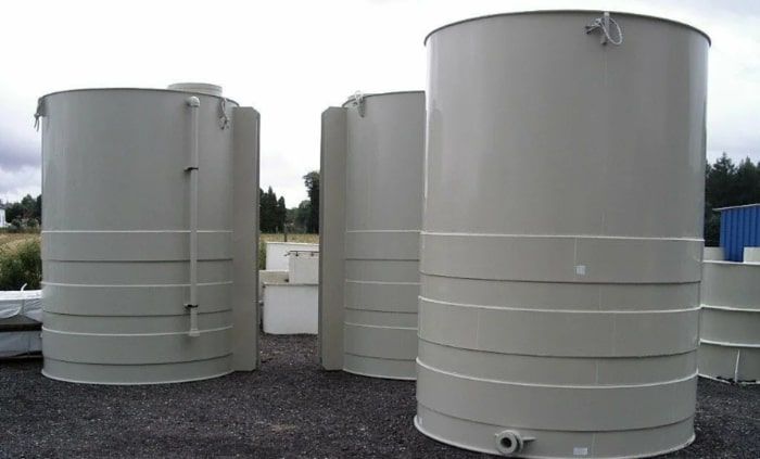 Вертикальные цилиндрические емкости изготавливаются из полипропилена с усилением дна полипропиленовой плитой.