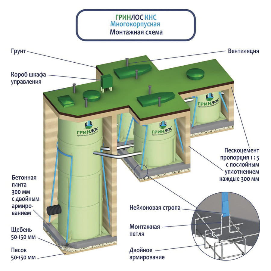 Строгое соблюдение технологии монтажа гарантирует надежную и бесперебойную работу многокорпусной канализационной насосной станции Гринлос на протяжении всего срока эксплуатации.