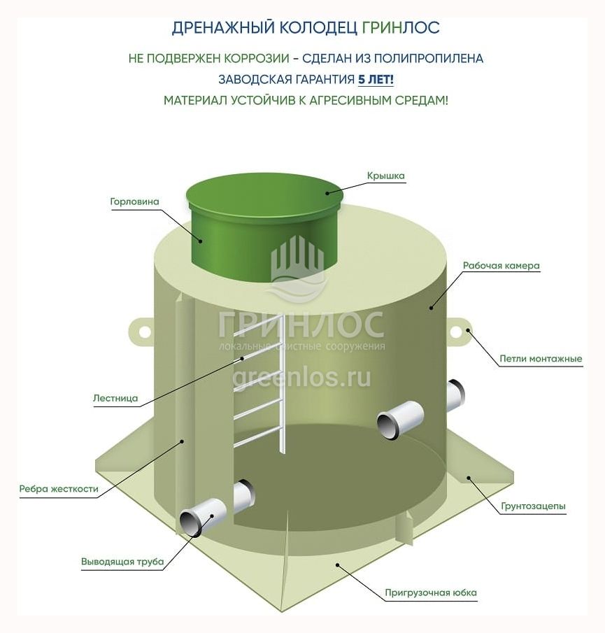 Особенности дренажного колодца ГРИНЛОС Колодец Д 1200/3000