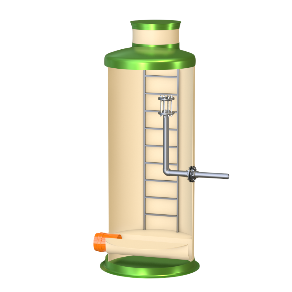 Колодец-гаситель ГРИНЛОС Г 1500/3500 используется для снижения давления перед очистными сооружениями при подаче сточной воды под давлением из аккумулирующего резервуара.