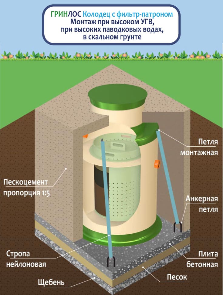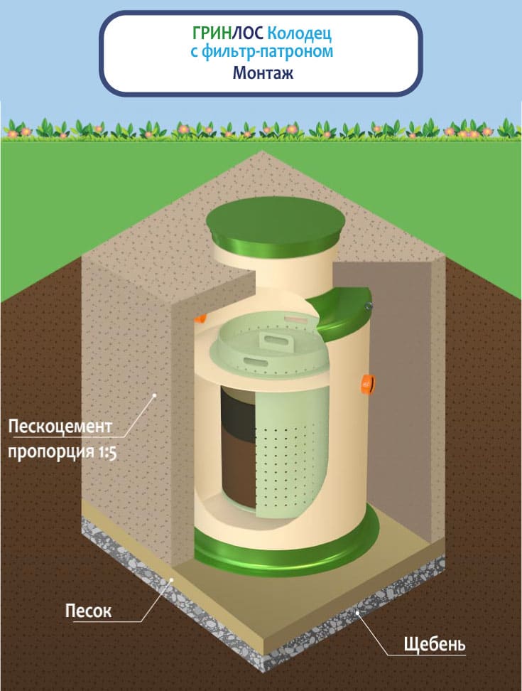 - Колодец с фильтр-патроном / фильтр-патрон с фланцем.