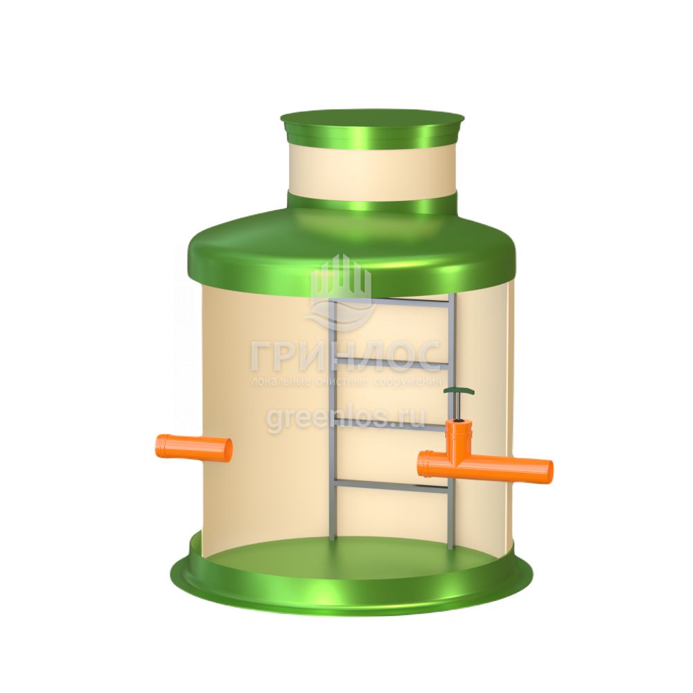 Диаметр модели Кн 1500/1500 составляет 1.5 м, высота – 1.5 м, объем корпуса равен 2.6 м3. Колодец Гринлос Кн 1500/1500 комплектуется патрубками необходимого вам диаметра.
