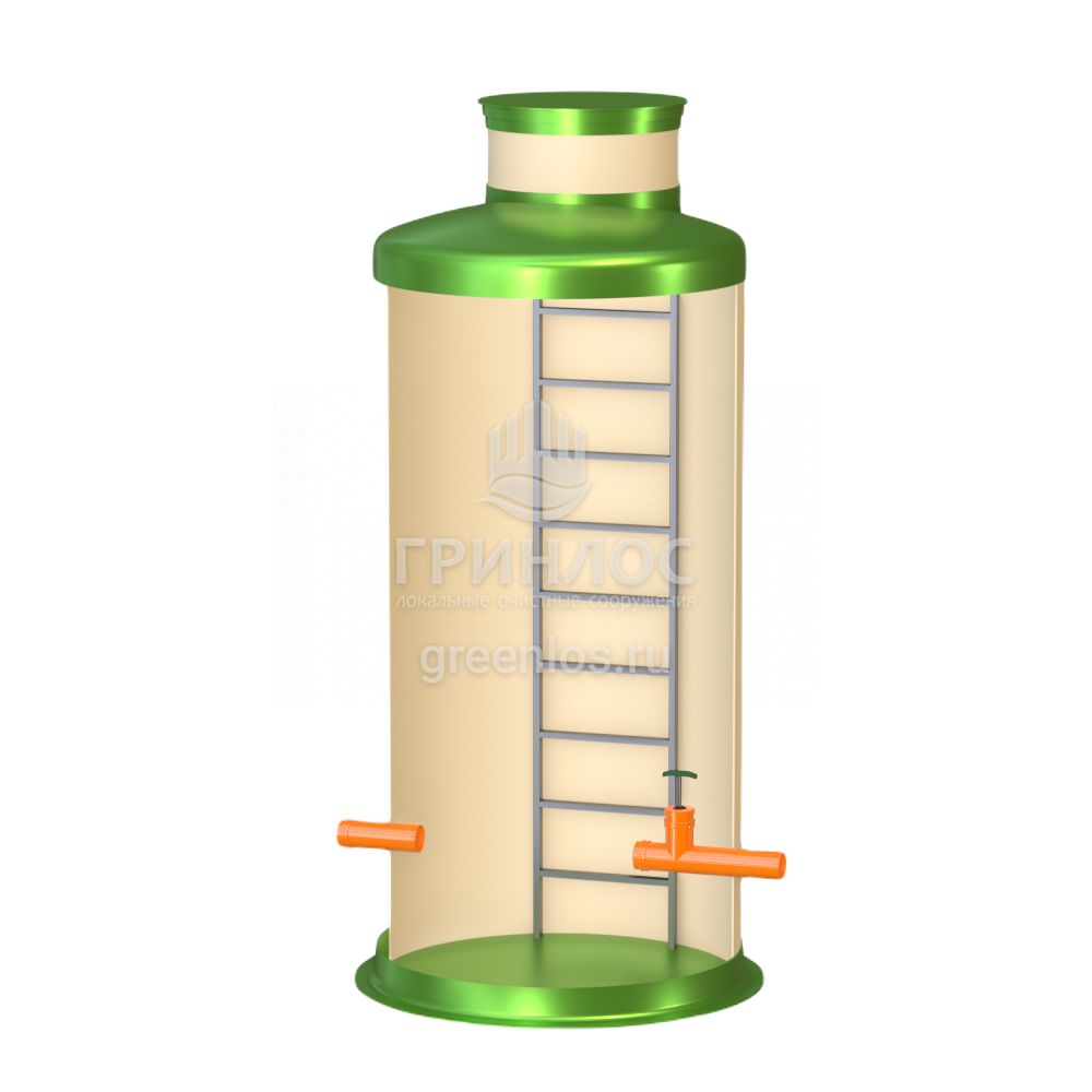 Диаметр модели Кн 1500/3000 составляет 1.5 м, высота – 3 м, объем корпуса равен 5.3 м3. Колодец Гринлос Кн 1500/3000 комплектуется патрубками необходимого вам диаметра.