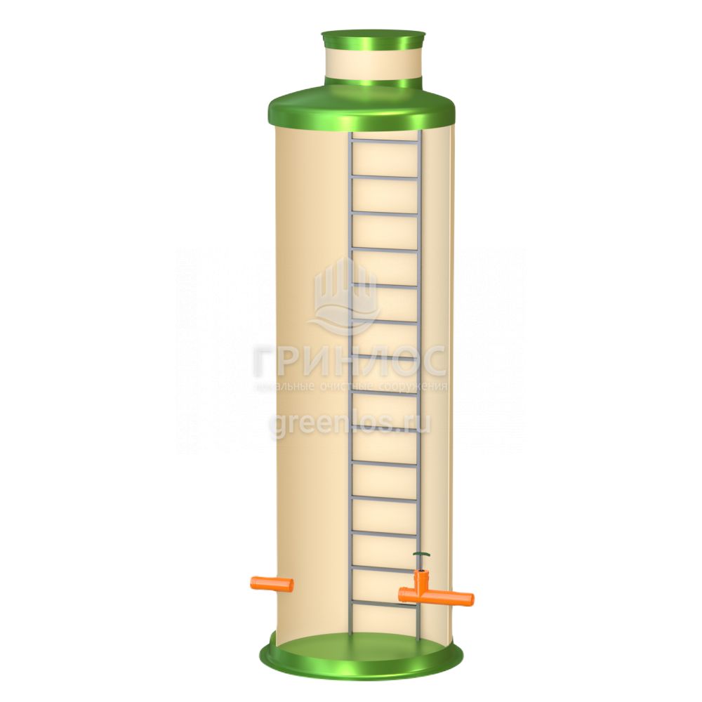 Диаметр модели Кн 1500/4500 составляет 1.5 м, высота – 4.5 м, объем корпуса равен 7.9 м3. Колодец Гринлос Кн 1500/4500 комплектуется патрубками необходимого вам диаметра.