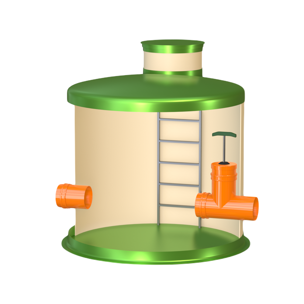 Диаметр модели Кн 2300/2000 составляет 2.3 м, высота – 2 м, объем корпуса равен 8.3 м3. Колодец Гринлос Кн 2300/2000 комплектуется патрубками необходимого вам диаметра.