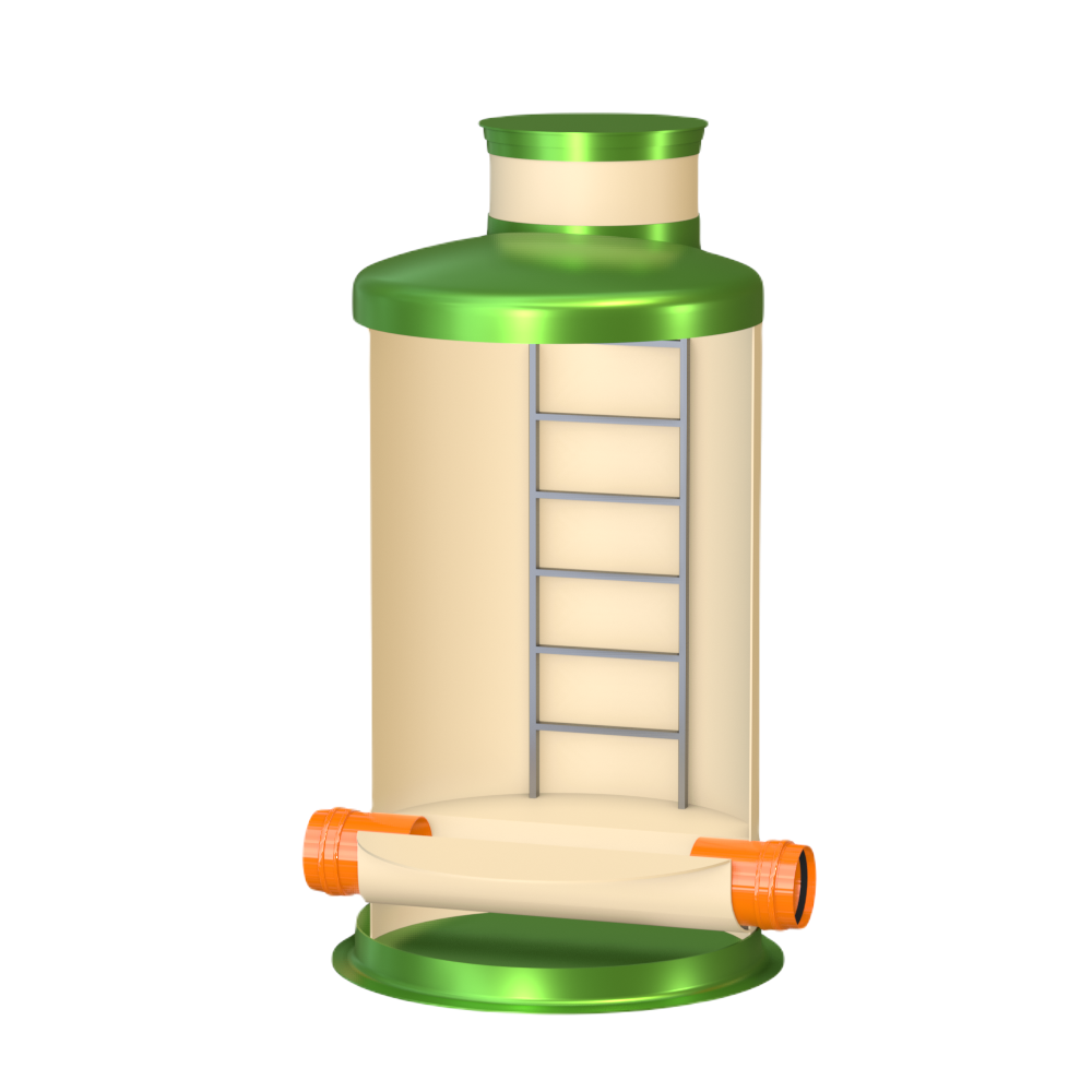 Колодец Гринлос Лн 1500/2500 имеет несколько патрубков для подключения трубопроводов различного диаметра. Эти патрубки также изготовлены из стеклопластика и обеспечивают герметичное соединение с внешними трубопроводами. Вместе с тем, они могут быть оборудованы фланцами или специальными манжетами для удобства монтажа.