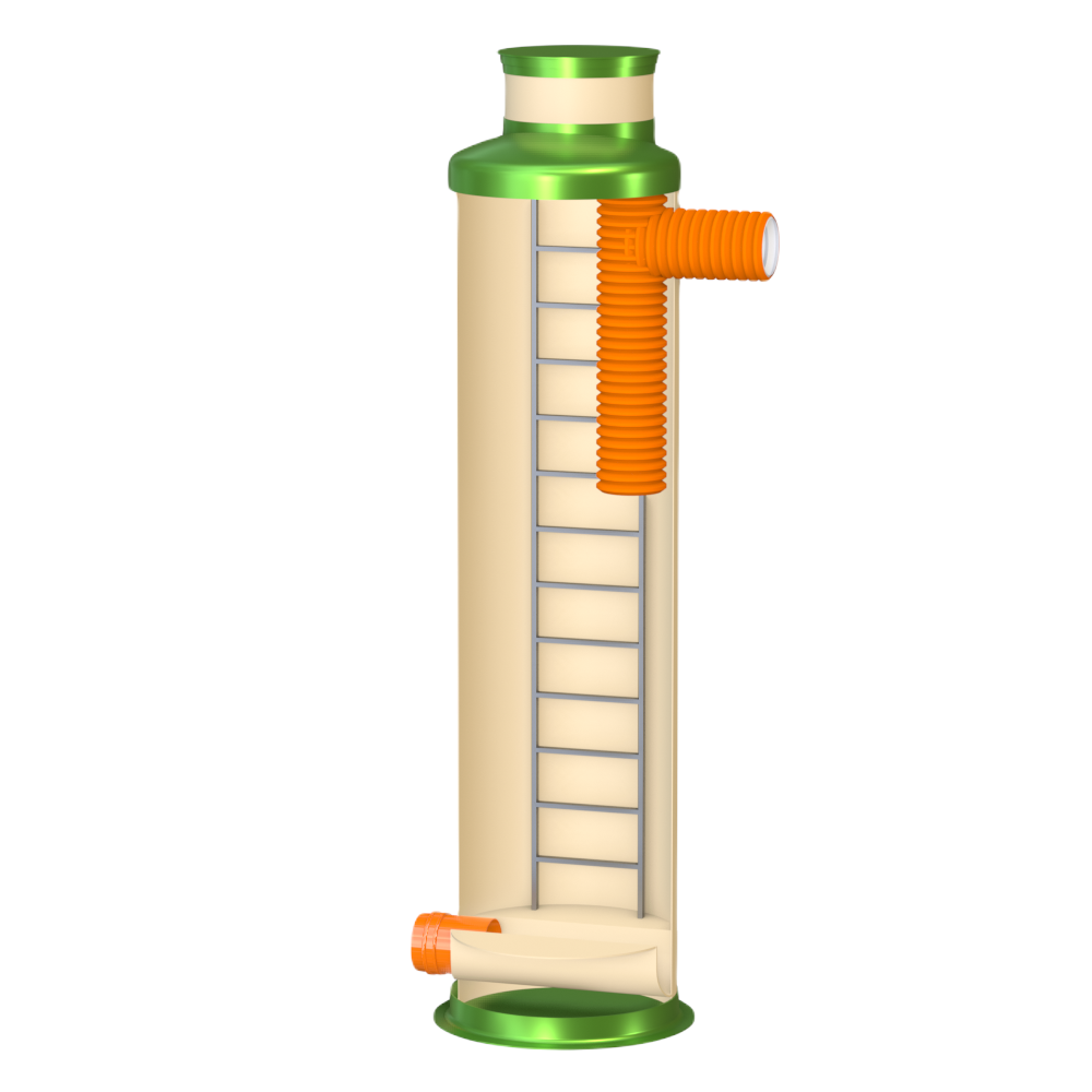 Перепадный колодец ГРИНЛОС Пп 1200/4500 представляет собой современное и надежное решение для различных инженерных сетей. Его внутреннее устройство разработано для обеспечения максимальной функциональности, герметичности и долговечности при эксплуатации. Основные элементы перепадного канализационного колодца Гринлос Пп 1200/4500: