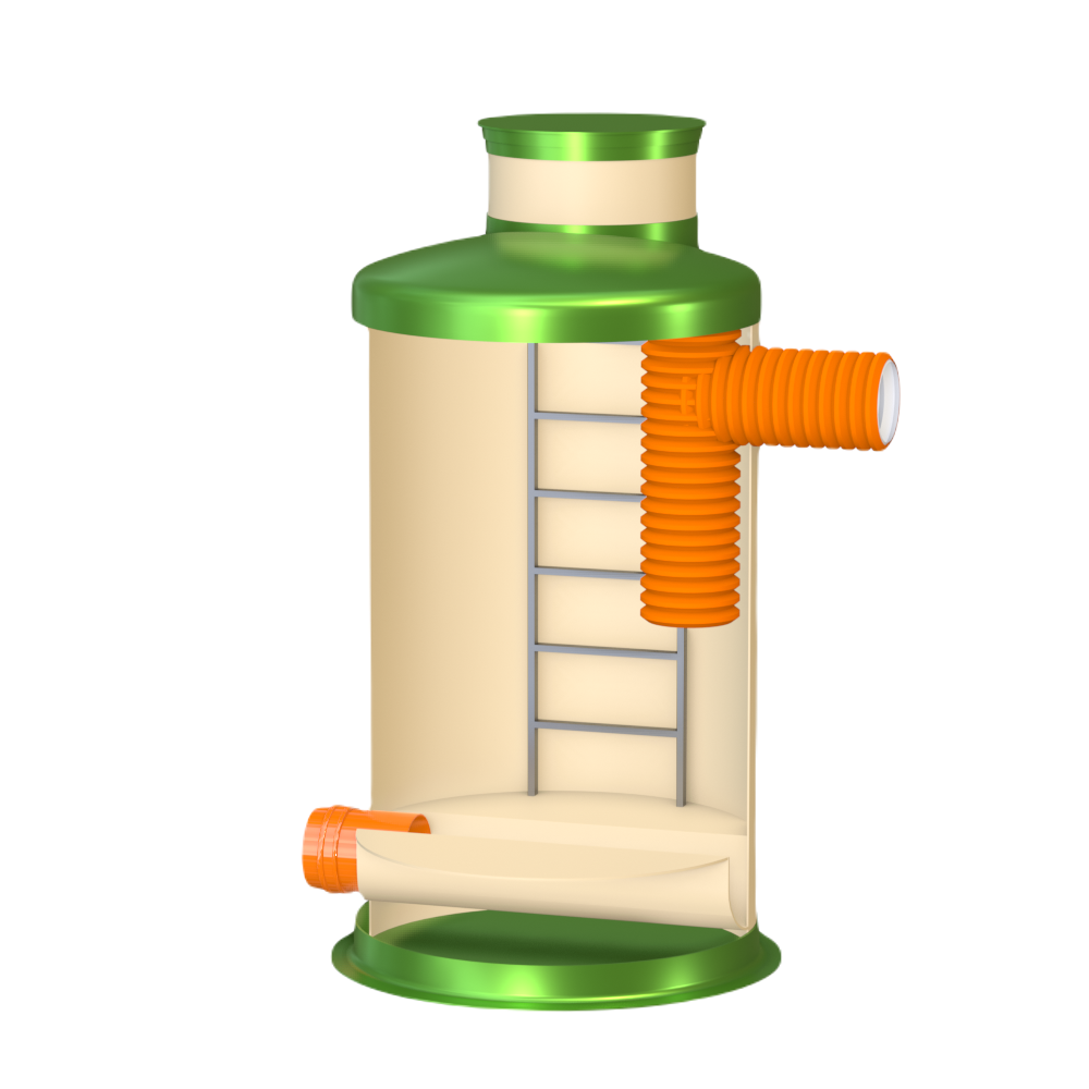 Перепадный колодец ГРИНЛОС Пп 1500/2500 представляет собой современное и надежное решение для различных инженерных сетей. Его внутреннее устройство разработано для обеспечения максимальной функциональности, герметичности и долговечности при эксплуатации. Основные элементы перепадного канализационного колодца Гринлос Пп 1500/2500: