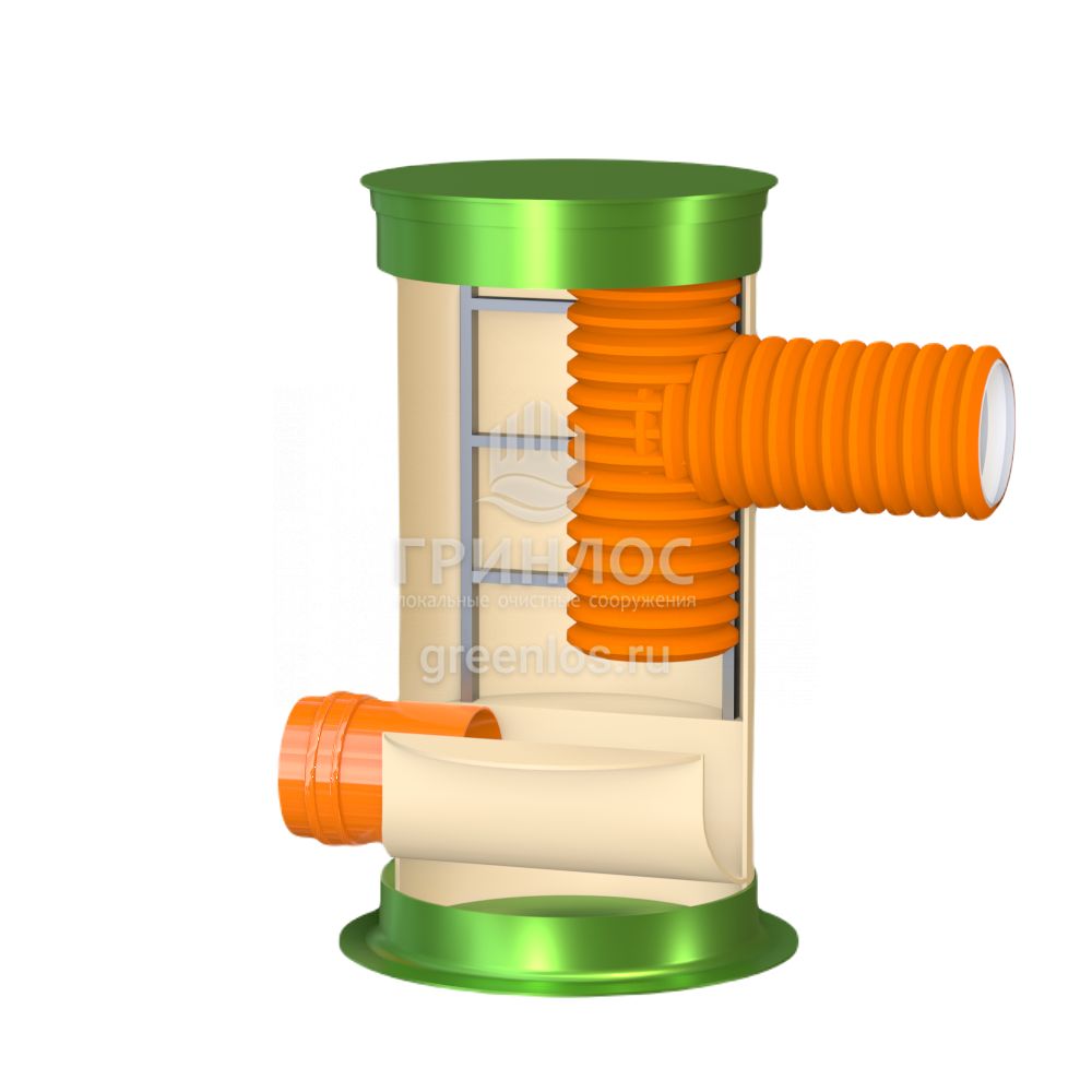 Колодец Гринлос Пп 800/1500 имеет несколько патрубков для подключения трубопроводов различного диаметра. Эти патрубки также изготовлены из стеклопластика и обеспечивают герметичное соединение с внешними трубопроводами. Вместе с тем, они могут быть оборудованы фланцами или специальными манжетами для удобства монтажа.
