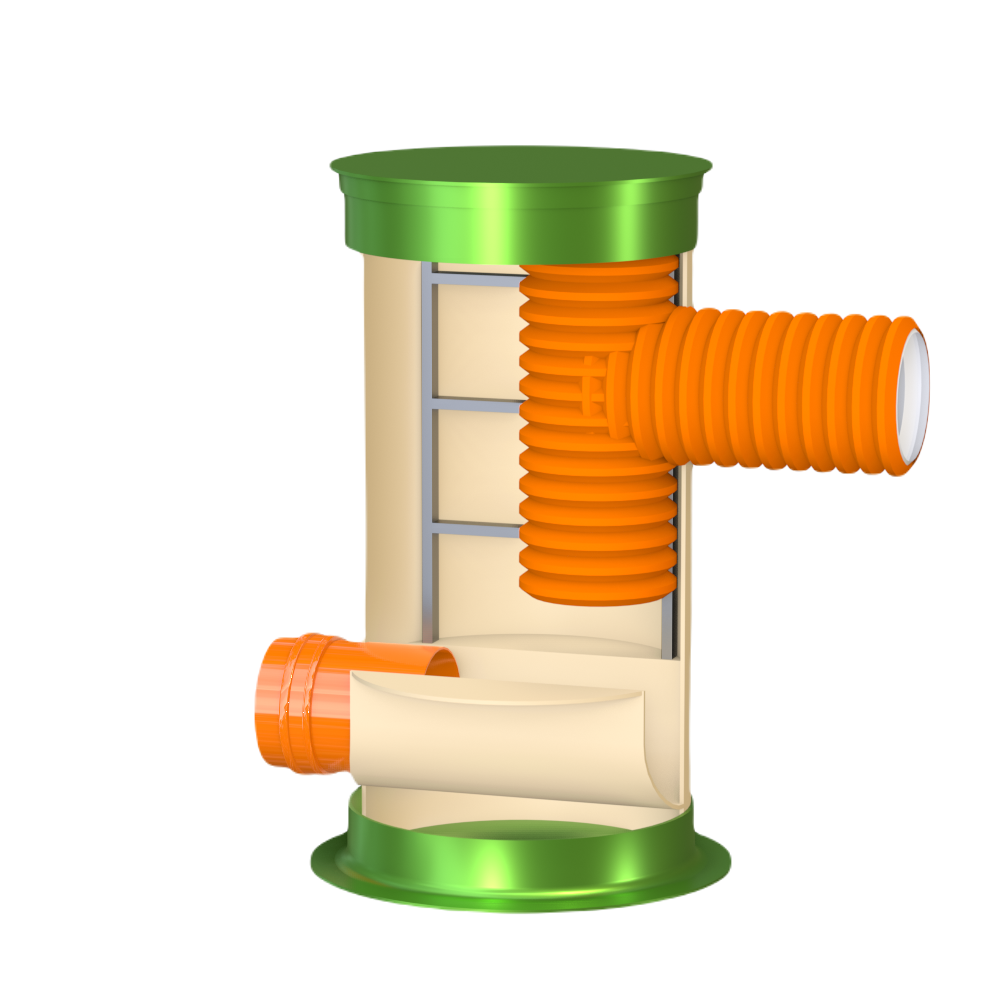 Перепадный колодец ГРИНЛОС Пп 800/1500 представляет собой современное и надежное решение для различных инженерных сетей. Его внутреннее устройство разработано для обеспечения максимальной функциональности, герметичности и долговечности при эксплуатации. Основные элементы перепадного канализационного колодца Гринлос Пп 800/1500: