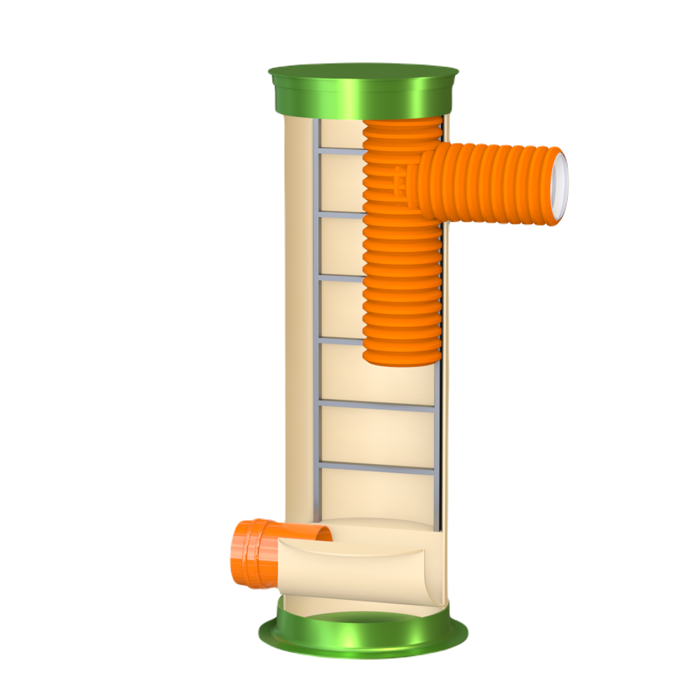 Перепадный колодец ГРИНЛОС Пп 800/2500 представляет собой современное и надежное решение для различных инженерных сетей. Его внутреннее устройство разработано для обеспечения максимальной функциональности, герметичности и долговечности при эксплуатации. Основные элементы перепадного канализационного колодца Гринлос Пп 800/2500:
