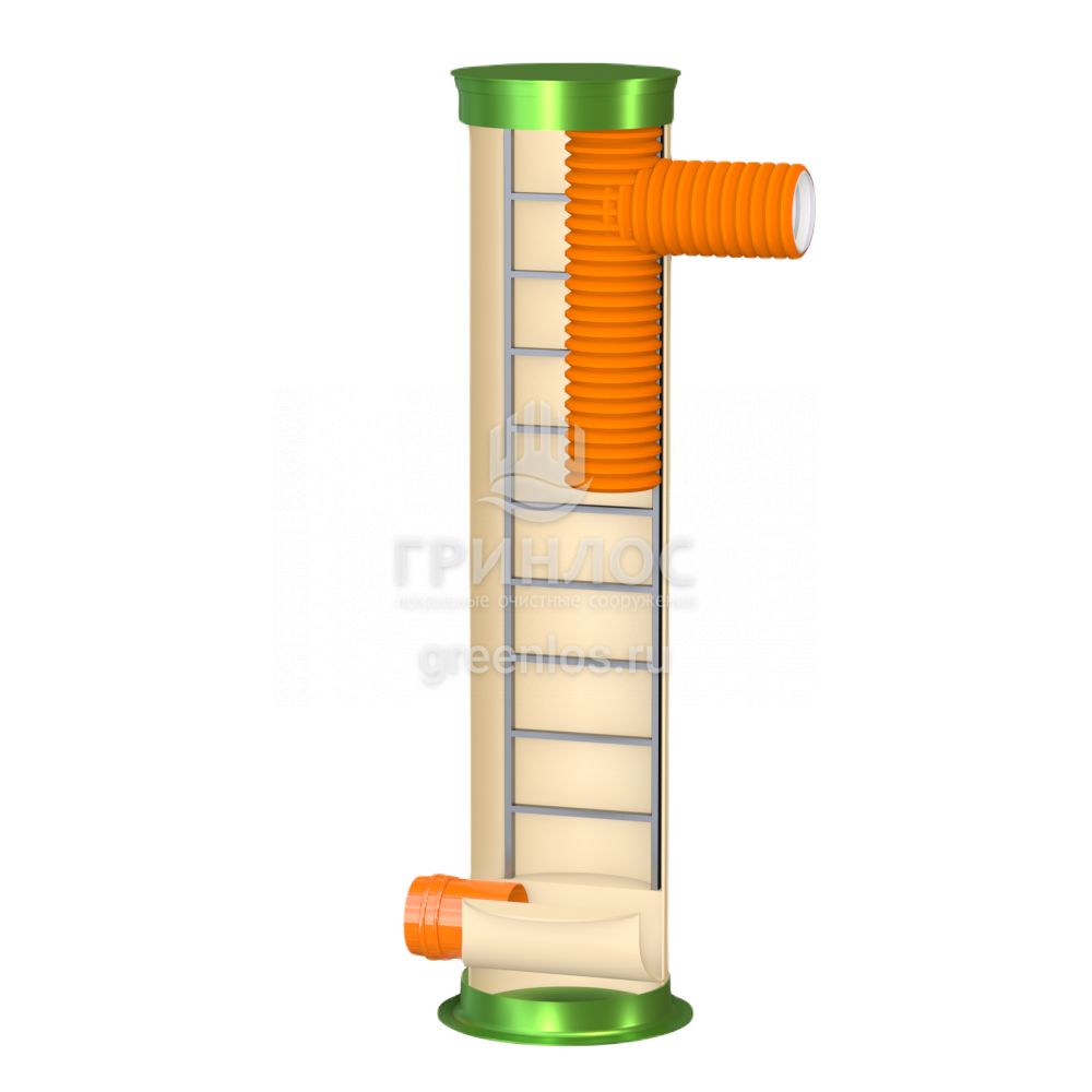 Колодец Гринлос Пп 800/3500 имеет несколько патрубков для подключения трубопроводов различного диаметра. Эти патрубки также изготовлены из стеклопластика и обеспечивают герметичное соединение с внешними трубопроводами. Вместе с тем, они могут быть оборудованы фланцами или специальными манжетами для удобства монтажа.