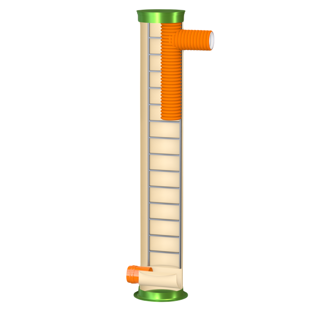 Перепадный колодец ГРИНЛОС Пп 800/5000 представляет собой современное и надежное решение для различных инженерных сетей. Его внутреннее устройство разработано для обеспечения максимальной функциональности, герметичности и долговечности при эксплуатации. Основные элементы перепадного канализационного колодца Гринлос Пп 800/5000: