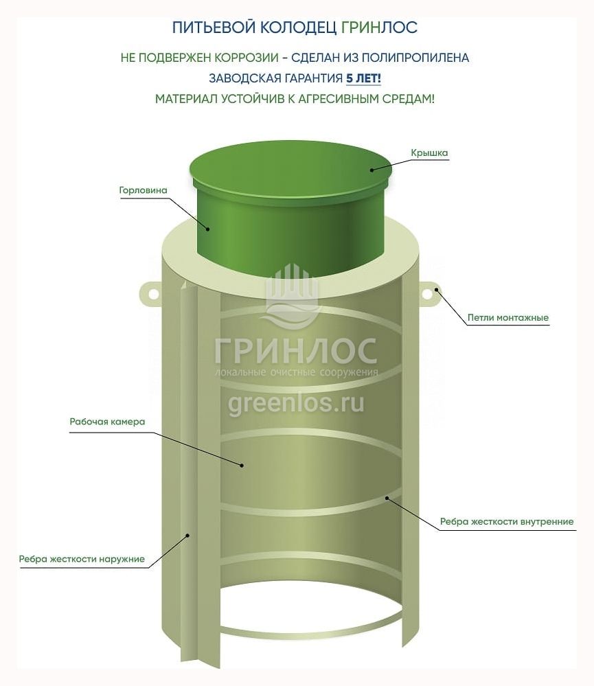 ГРИНЛОС колодец питьевой, обеспечивает беспрепятственный доступ к чистой питьевой воде на территории участков и частных секторов.