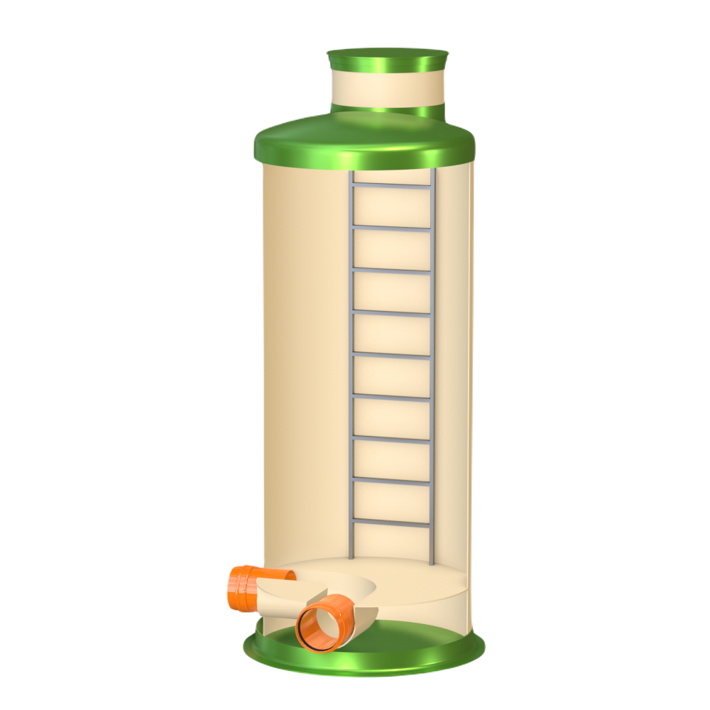 Колодец Гринлос Пв 1500/3500 имеет несколько патрубков для подключения трубопроводов различного диаметра. Эти патрубки также изготовлены из стеклопластика и обеспечивают герметичное соединение с внешними трубопроводами. Вместе с тем, они могут быть оборудованы фланцами или специальными манжетами для удобства монтажа.
