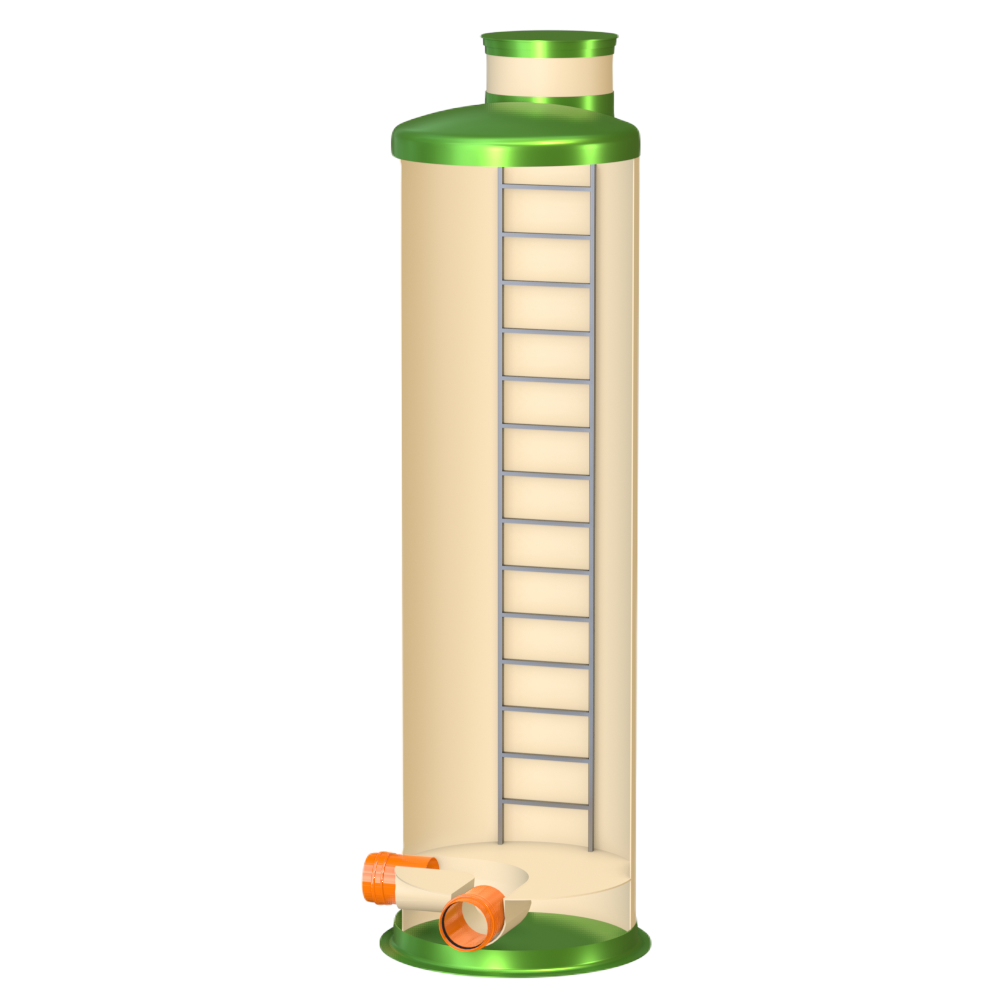 Колодец Гринлос Пв 1500/5000 имеет несколько патрубков для подключения трубопроводов различного диаметра. Эти патрубки также изготовлены из стеклопластика и обеспечивают герметичное соединение с внешними трубопроводами. Вместе с тем, они могут быть оборудованы фланцами или специальными манжетами для удобства монтажа.