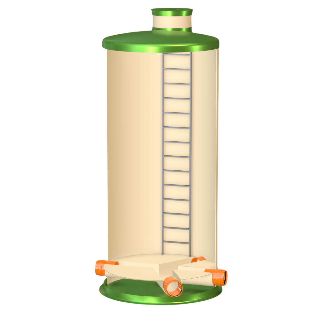 Колодец Гринлос У 2300/5000 имеет несколько патрубков для подключения трубопроводов различного диаметра. Эти патрубки также изготовлены из стеклопластика и обеспечивают герметичное соединение с внешними трубопроводами. Вместе с тем, они могут быть оборудованы фланцами или специальными манжетами для удобства монтажа.