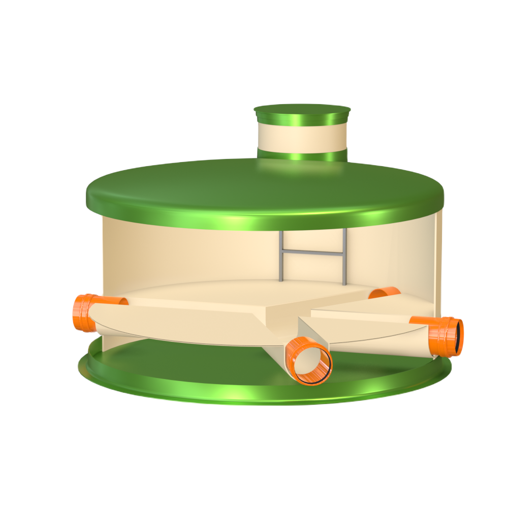 Узловой колодец ГРИНЛОС У 3000/1500 устанавливается в местах соединения различных потоков. Такие колодцы могут выполнять функции как поворотных, так и перепадных колодцев одновременно. Чаще всего узловой колодец используется в качестве распределительного в системах очистных сооружений, которые состоят из нескольких модулей, для равномерного распределения потока между этими модулями.