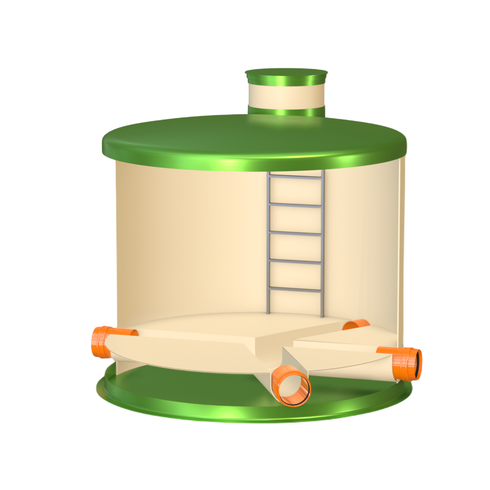 Узловой колодец ГРИНЛОС У 3000/2500 устанавливается в местах соединения различных потоков. Такие колодцы могут выполнять функции как поворотных, так и перепадных колодцев одновременно. Чаще всего узловой колодец используется в качестве распределительного в системах очистных сооружений, которые состоят из нескольких модулей, для равномерного распределения потока между этими модулями.