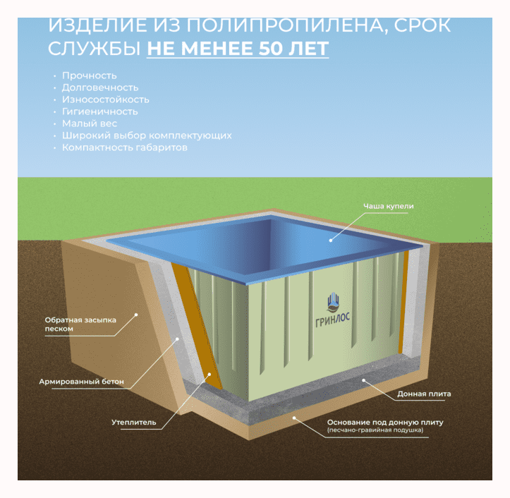 Особенности ГРИНЛОС Купель 2000*1500*1500 Прямоугольная