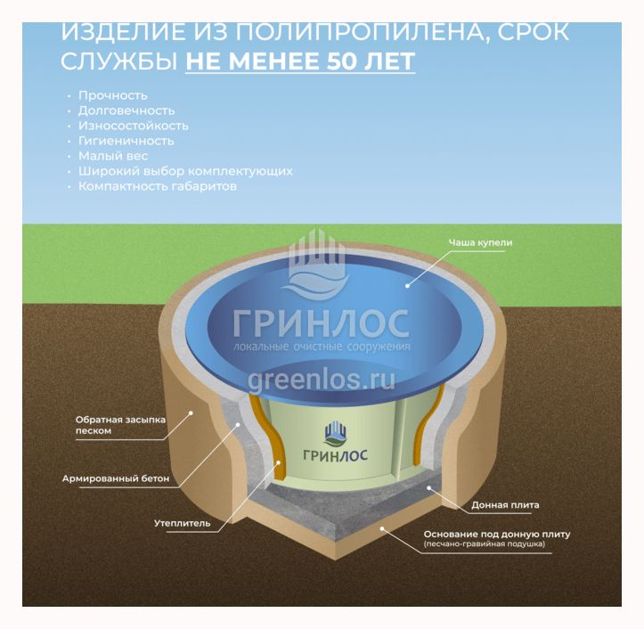 Преимущества ГРИНЛОС Купель 2000*2000*1000 Круглая