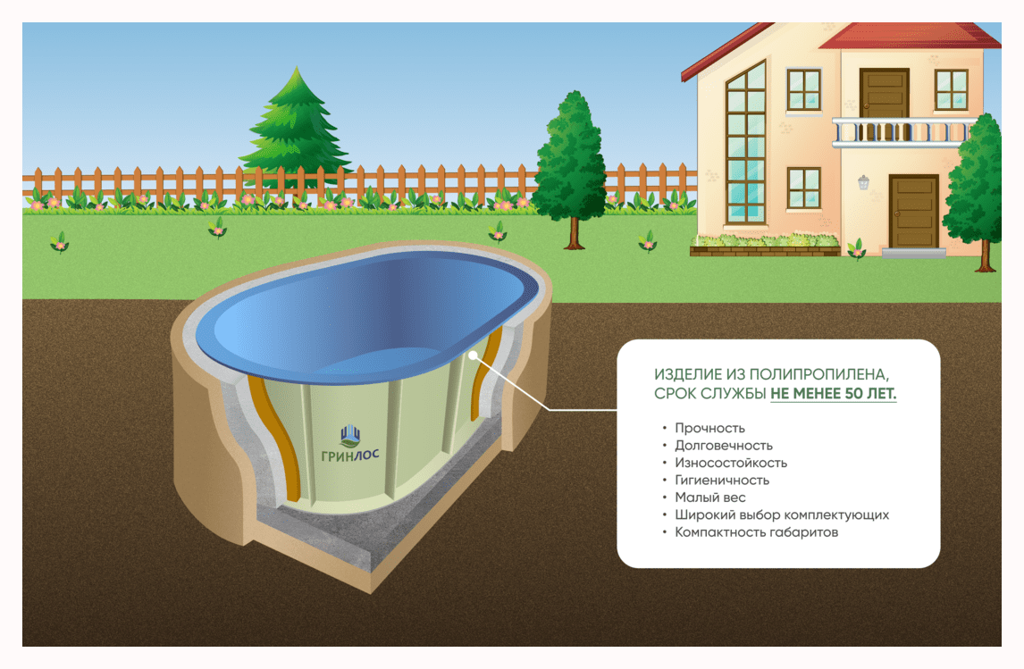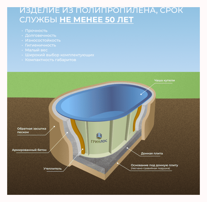 Преимущества ГРИНЛОС Купель 3500*2000*1000 Овальная