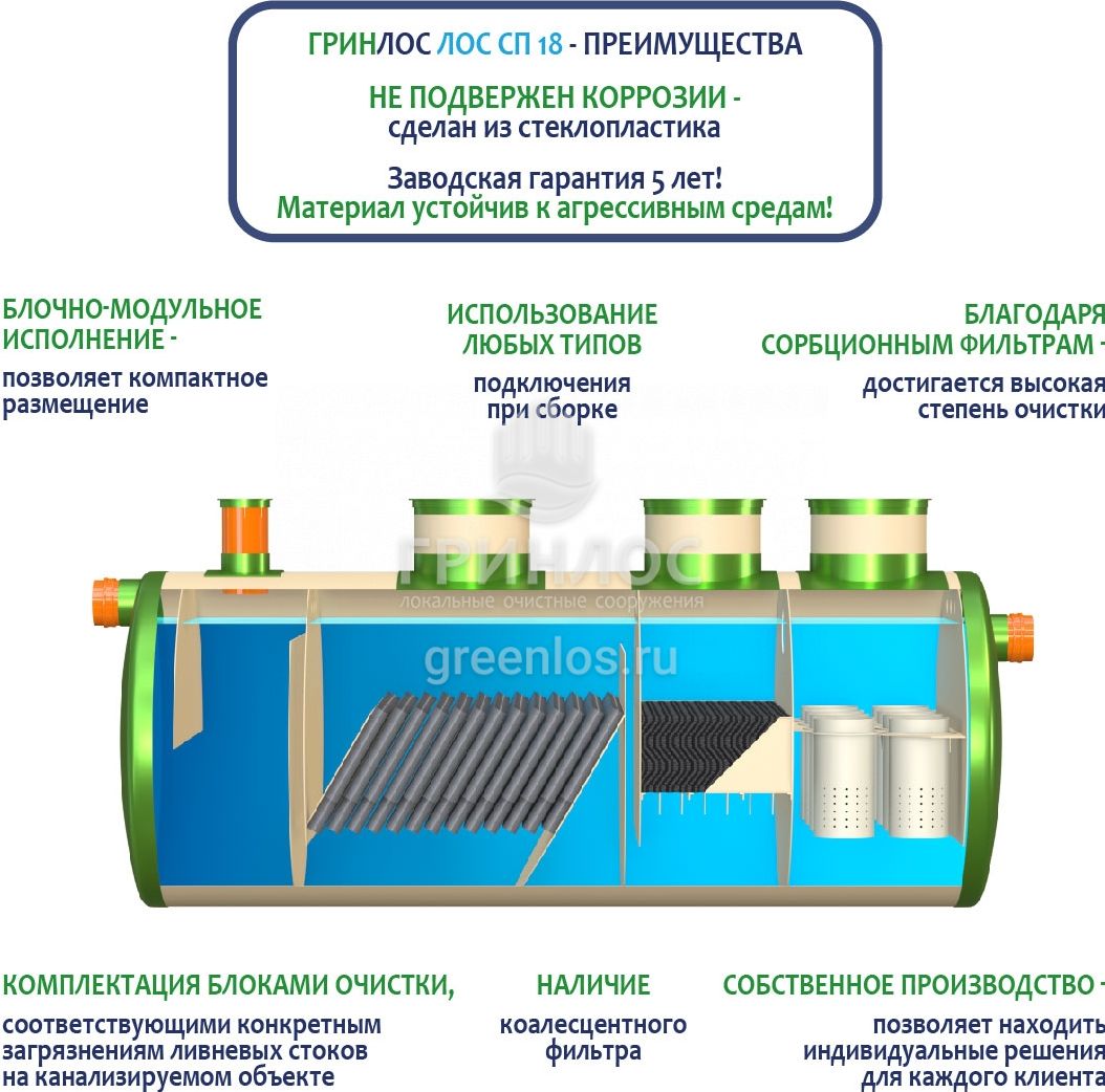 Преимущества ГРИНЛОС Ливневая канализация 18-2300 стеклопластиковая