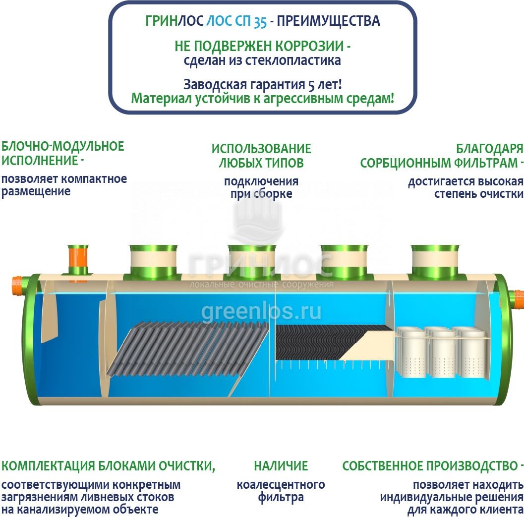 Особенности ГРИНЛОС Ливневая канализация 35-2300 стеклопластиковая