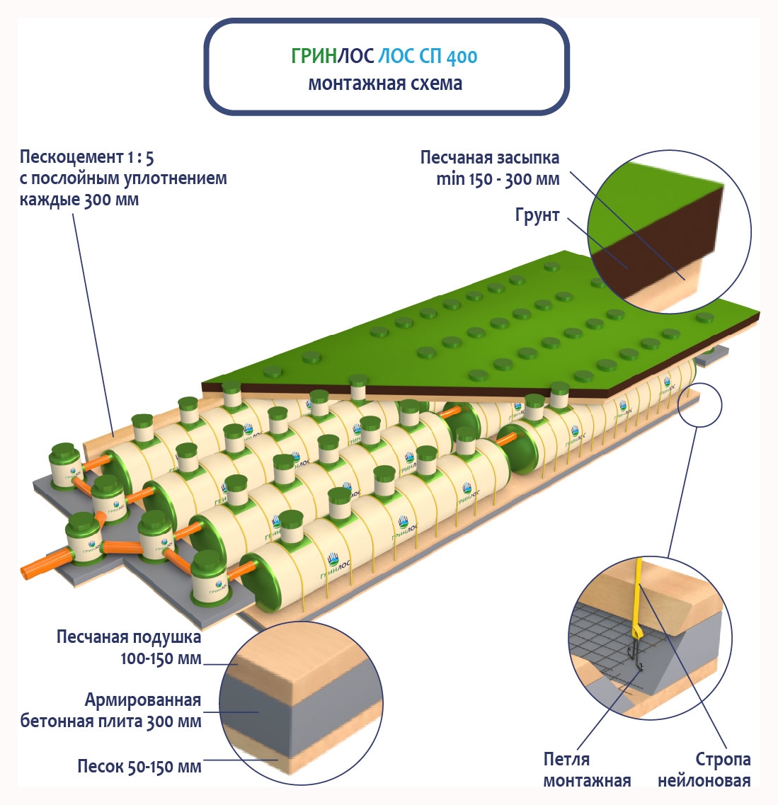 Монтаж ГРИНЛОС Ливневая канализация 400-2300 стеклопластиковая