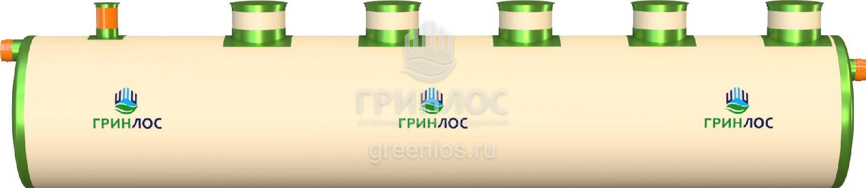- Корпус «ГРИНЛОС Ливневая канализация 45-2300 стеклопластиковая» (укомплектован крышками)