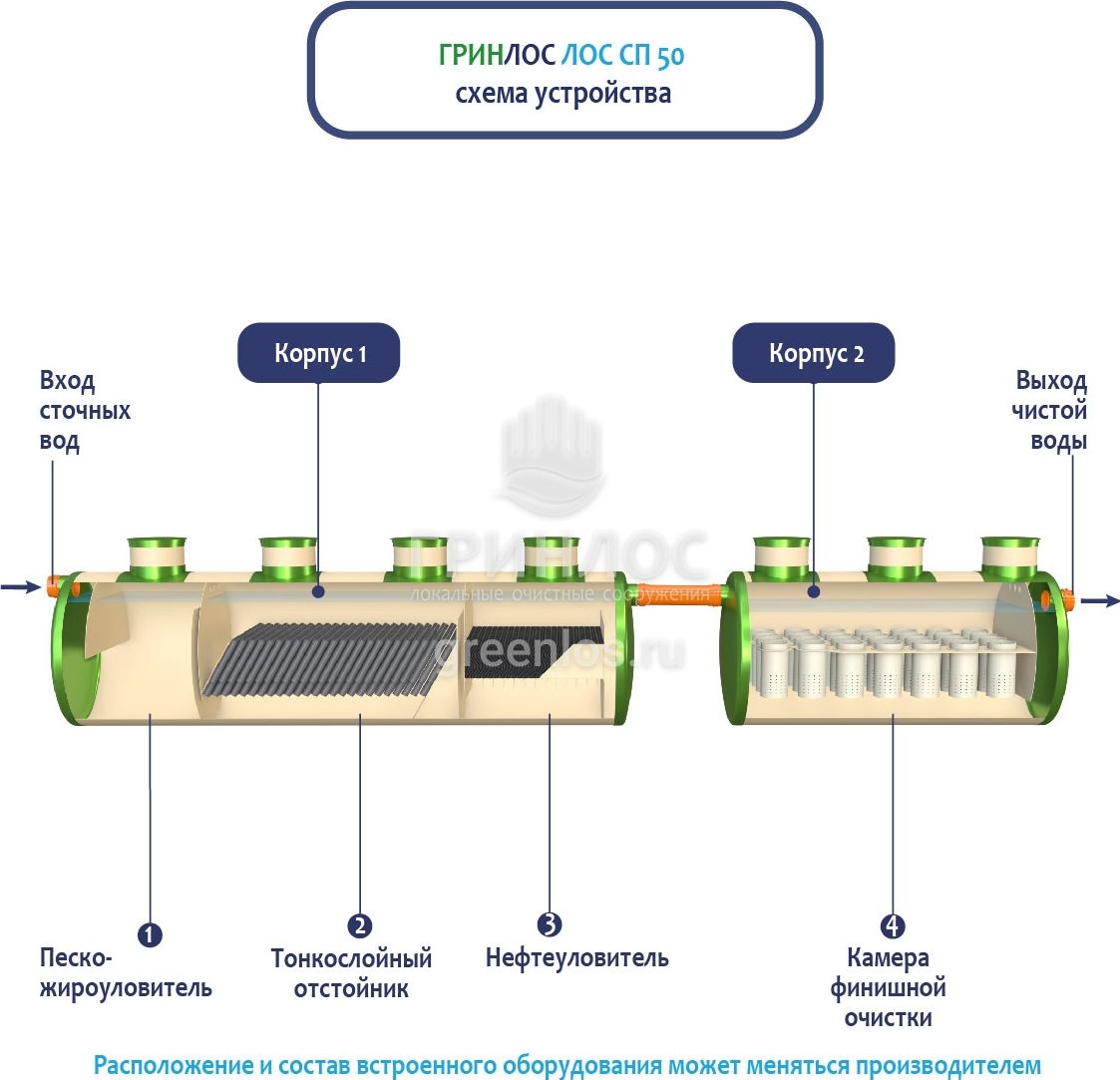 Гринлос ЛК 50-2300 Сп выполнена из стеклопластика – инертного материала, устойчивого к агрессивным средам.