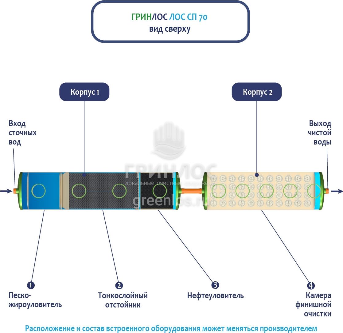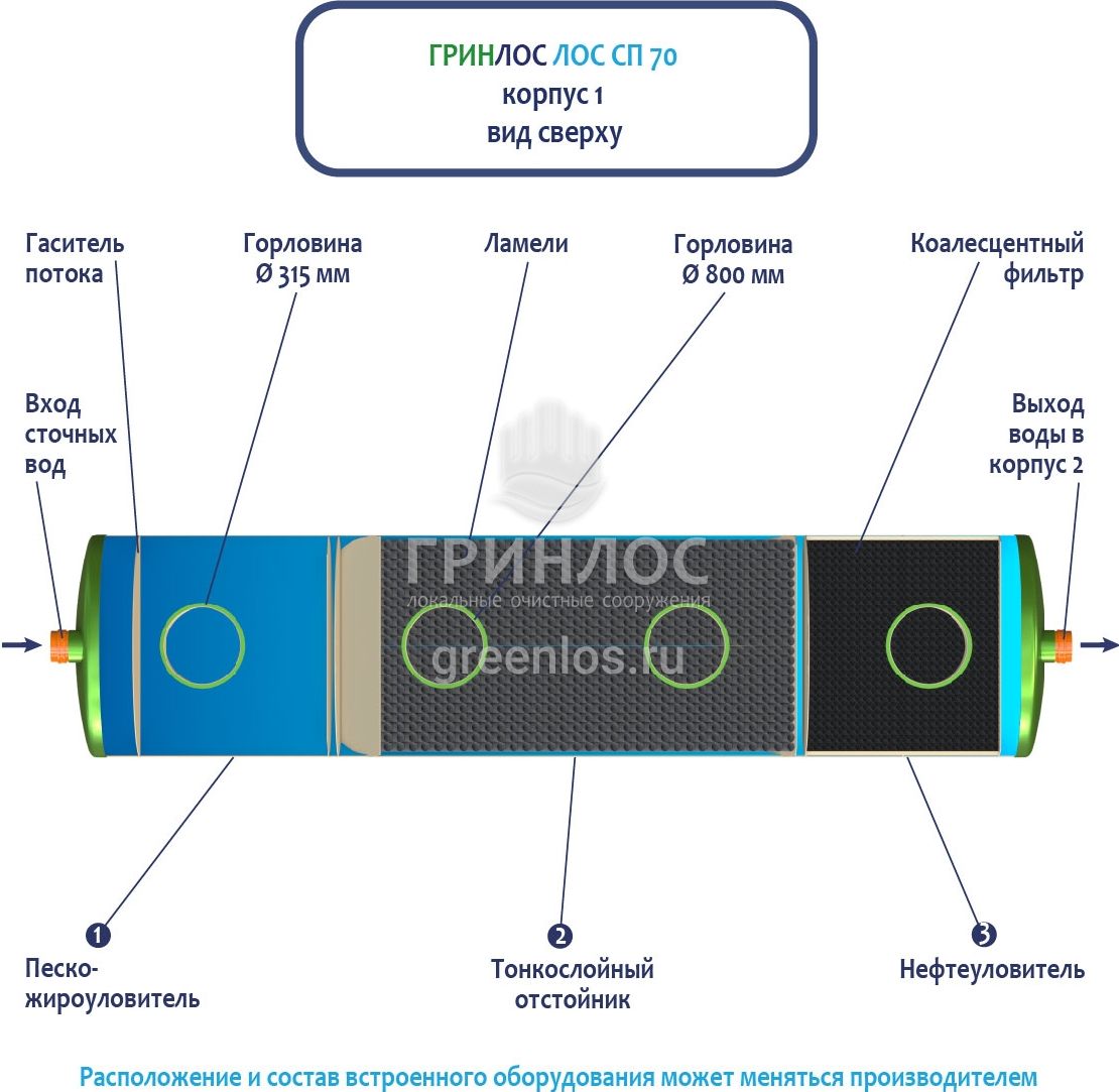 Гринлос ГРИНЛОС Ливневая канализация 70-2300 стеклопластиковая - Внутреннее устройство корпусов 1 и 2, вид сверху