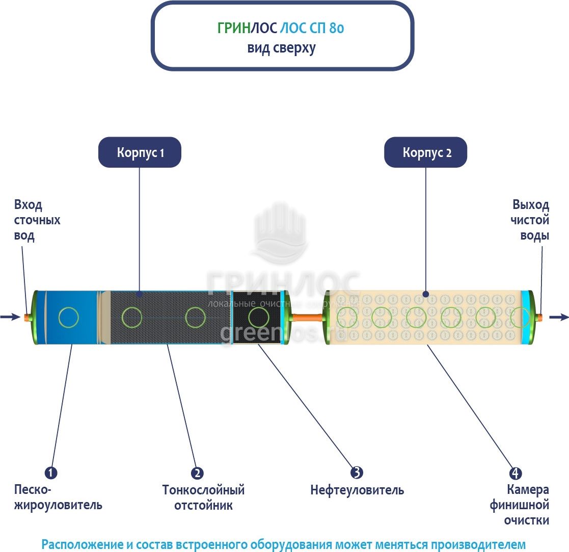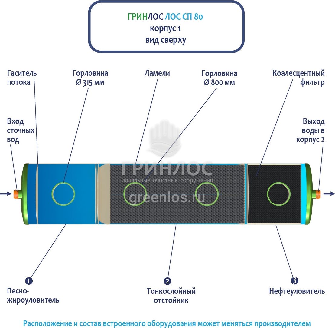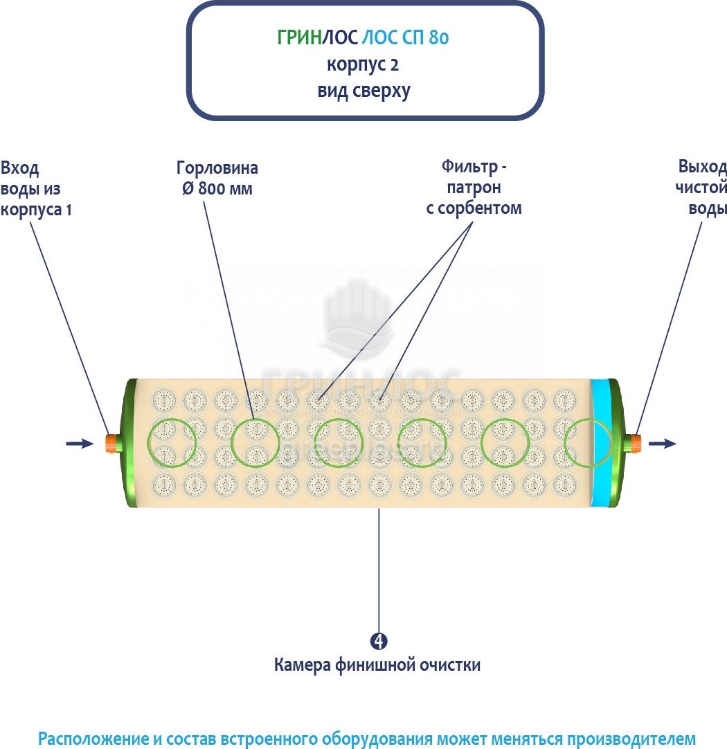 Гринлос ГРИНЛОС Ливневая канализация 80-2300 стеклопластиковая - Внутреннее устройство корпусов 1 и 2, вид сверху
