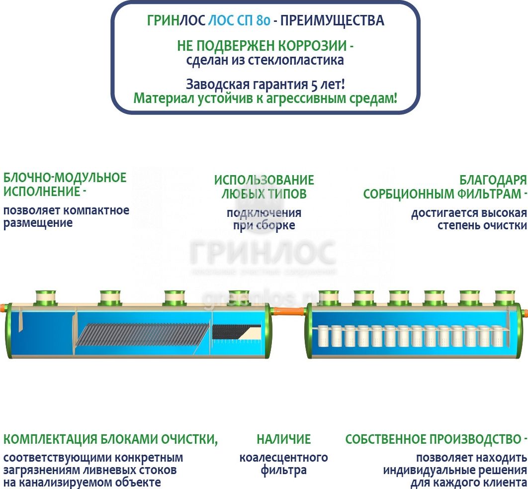 Гринлос ЛК 80-2300 Сп выполнена из стеклопластика – инертного материала, устойчивого к агрессивным средам.