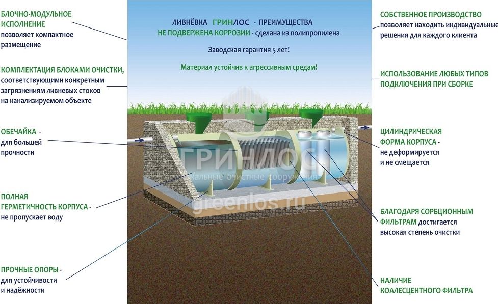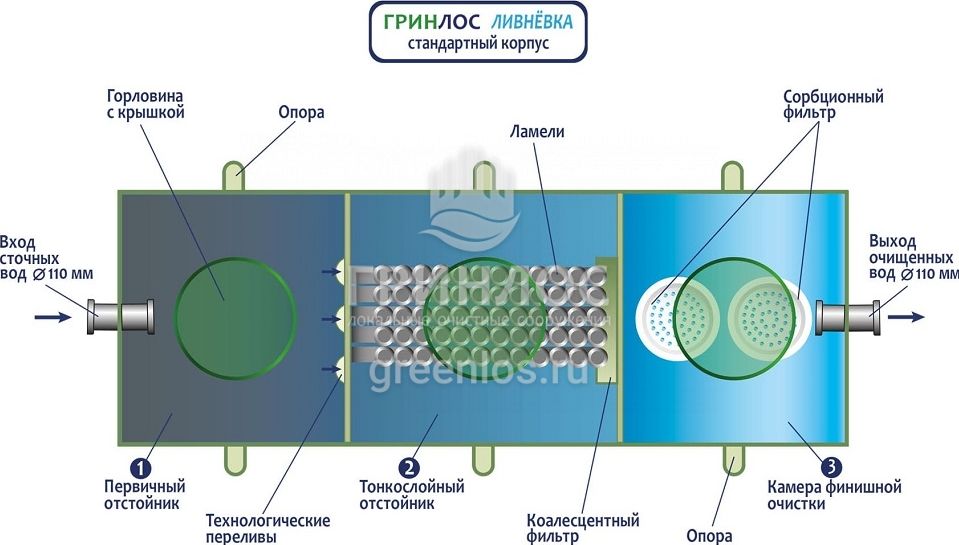 Принцип работы и внутреннее устройство ГРИНЛОС Ливневая канализация М35