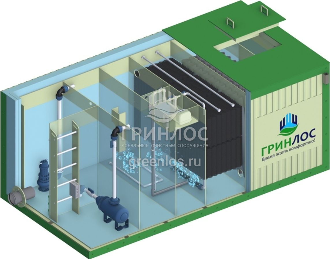 Морозостойкий септик Гринлос Норд 20 обладает производительностью 4 м3/сут и рассчитан на 20 человек. Наземное размещение и модульная конструкция позволяют гибко наращивать мощность и упрощают монтаж.