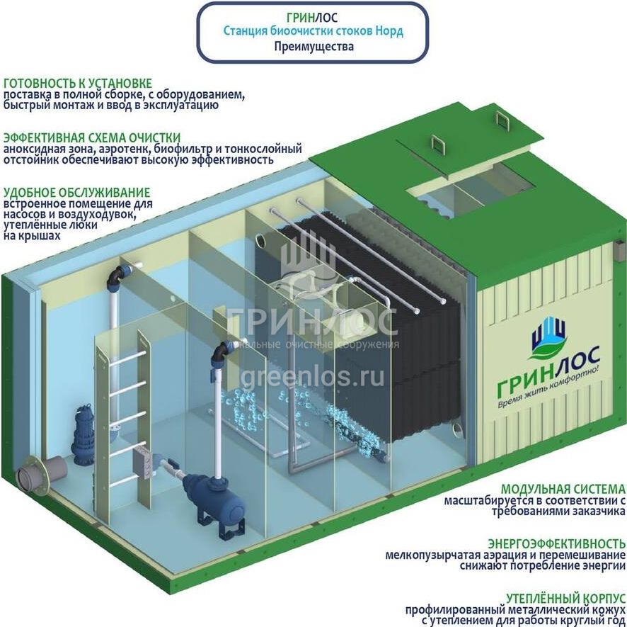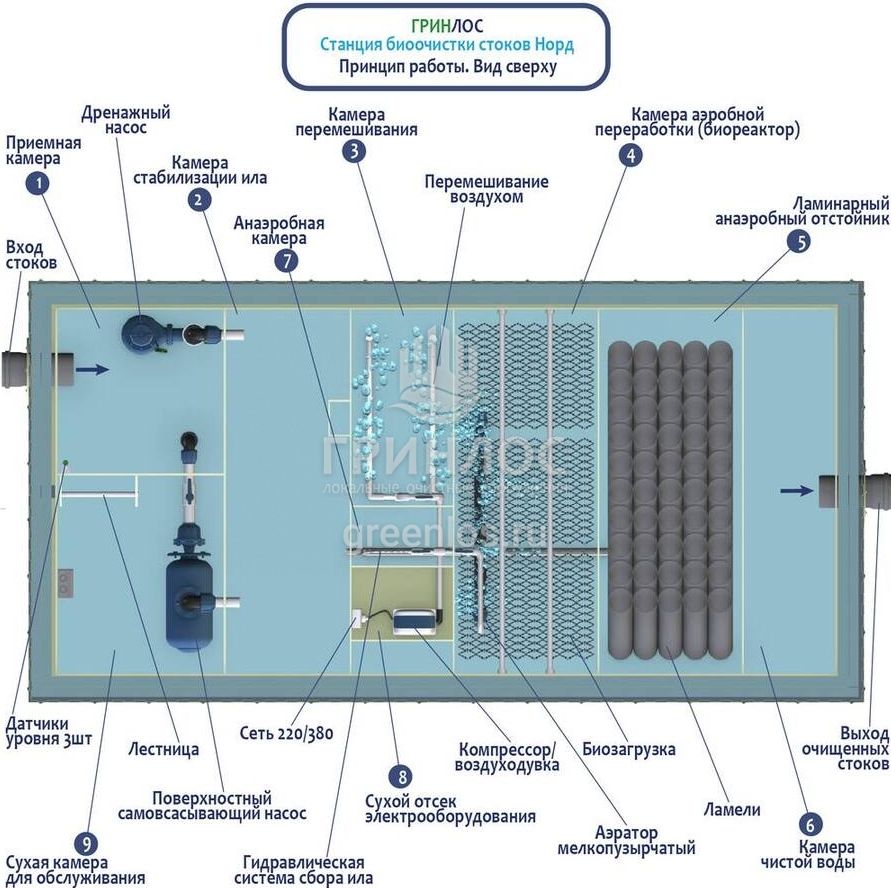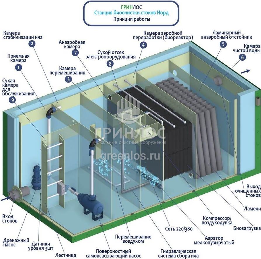 Септик Гринлос Норд 20 работает на основе биологической очистки сточных вод с помощью активного ила. Для эффективной работы важно поддерживать благоприятные условия для микроорганизмов.