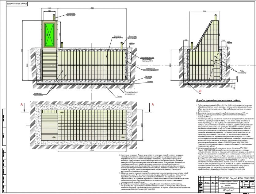 Монтаж Гринлос Погреб ДТБ 4500*2000*2000