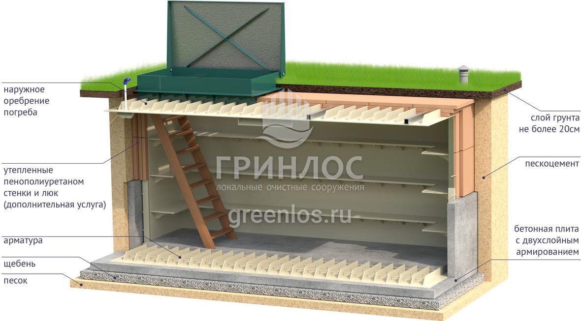 Особенности погреба Гринлос Погреб Погреб ЛК 4500*1500*2000