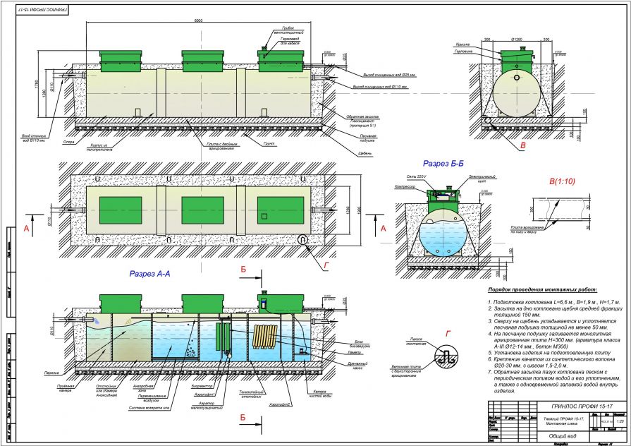 Монтаж септика ГРИНЛОС Профи 15
