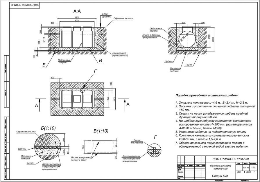 Монтаж септика ГРИНЛОС Пром 30 Пр