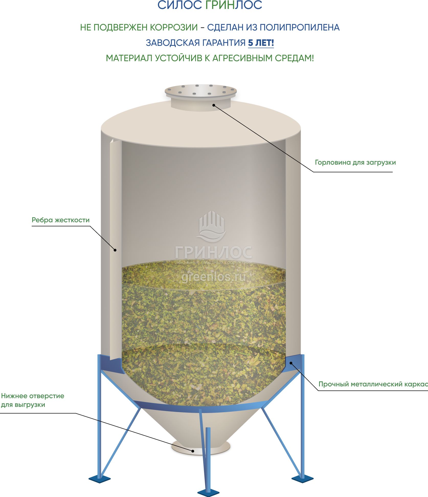 ГРИНЛОС Силос 6 изготавливается из полипропилена, который не пропускает ультрафиолетовые лучи и не разрушается под их воздействием.